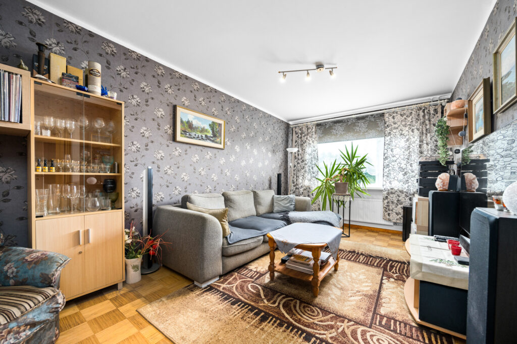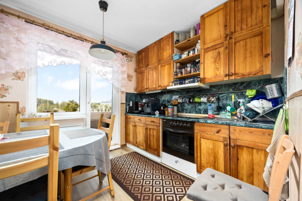 Seinad on valdavalt tapeeditud, vannitoas plaaditud. Tubade põrandaid katab naturaalparkett, köögis laminaat ja koridoris linoleum. Korteris on Telia valguskaabel.